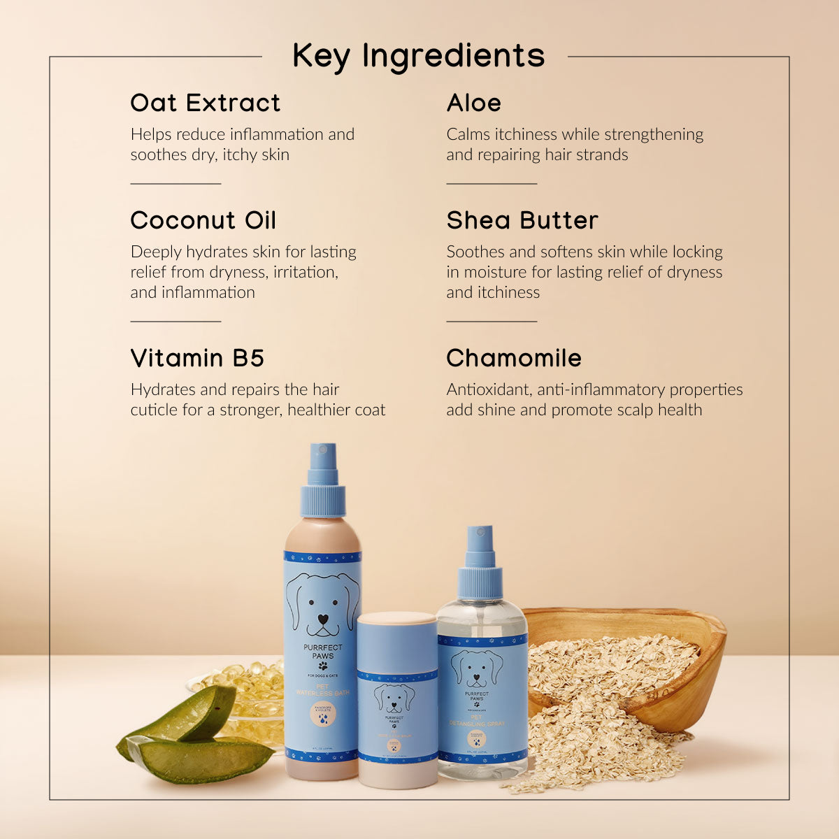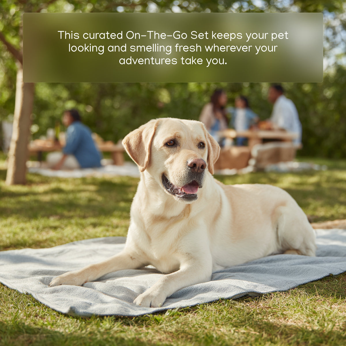 Complete with a Waterless Bath, Paw Balm, and Leave-In Detangler, this curated On-The-Go Set keeps your pet looking and smelling fresh wherever your adventures take you.
