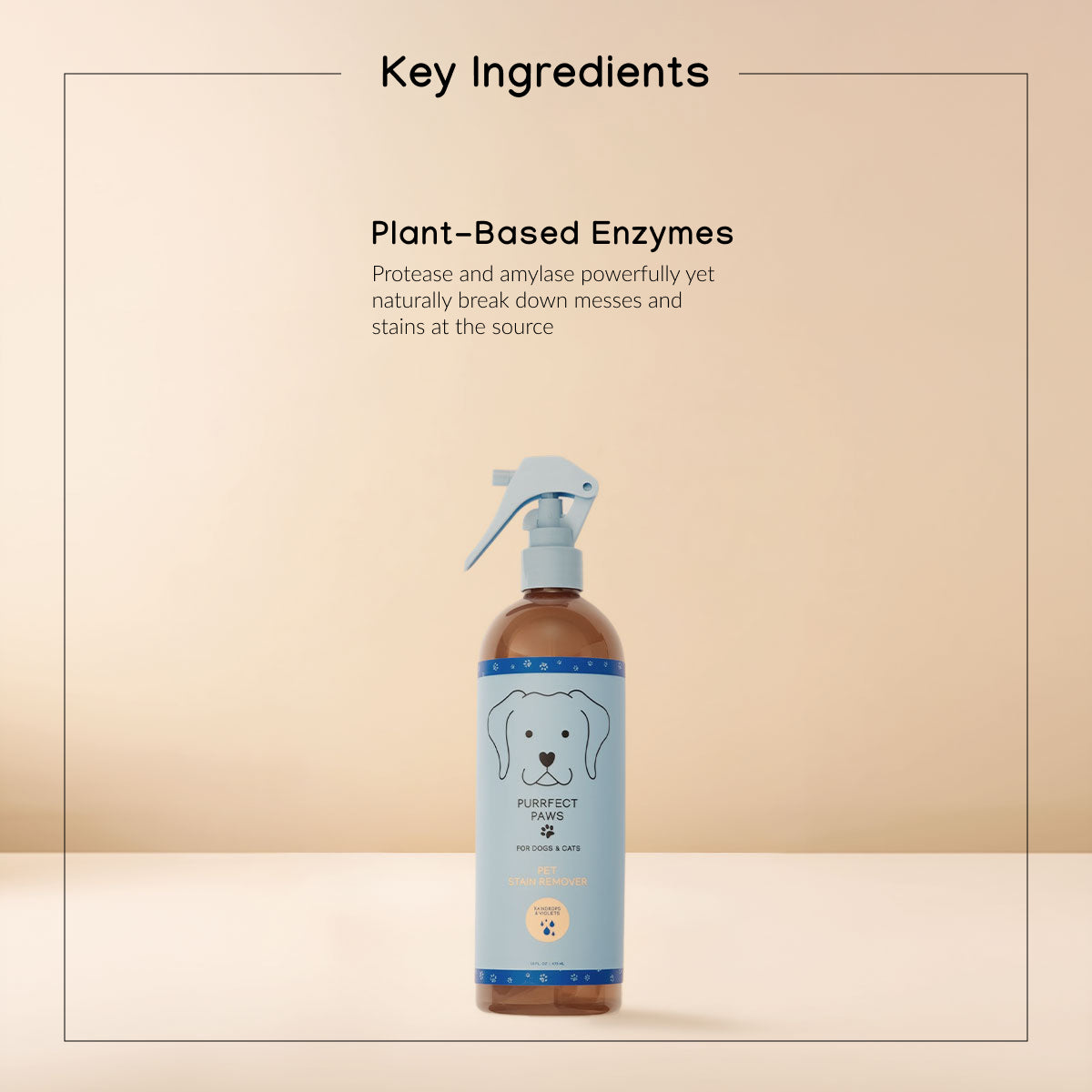 Clean them up the natural way with the 2-in-1 Pet Stain Remover and Deodorizer by Purrfect Paws.